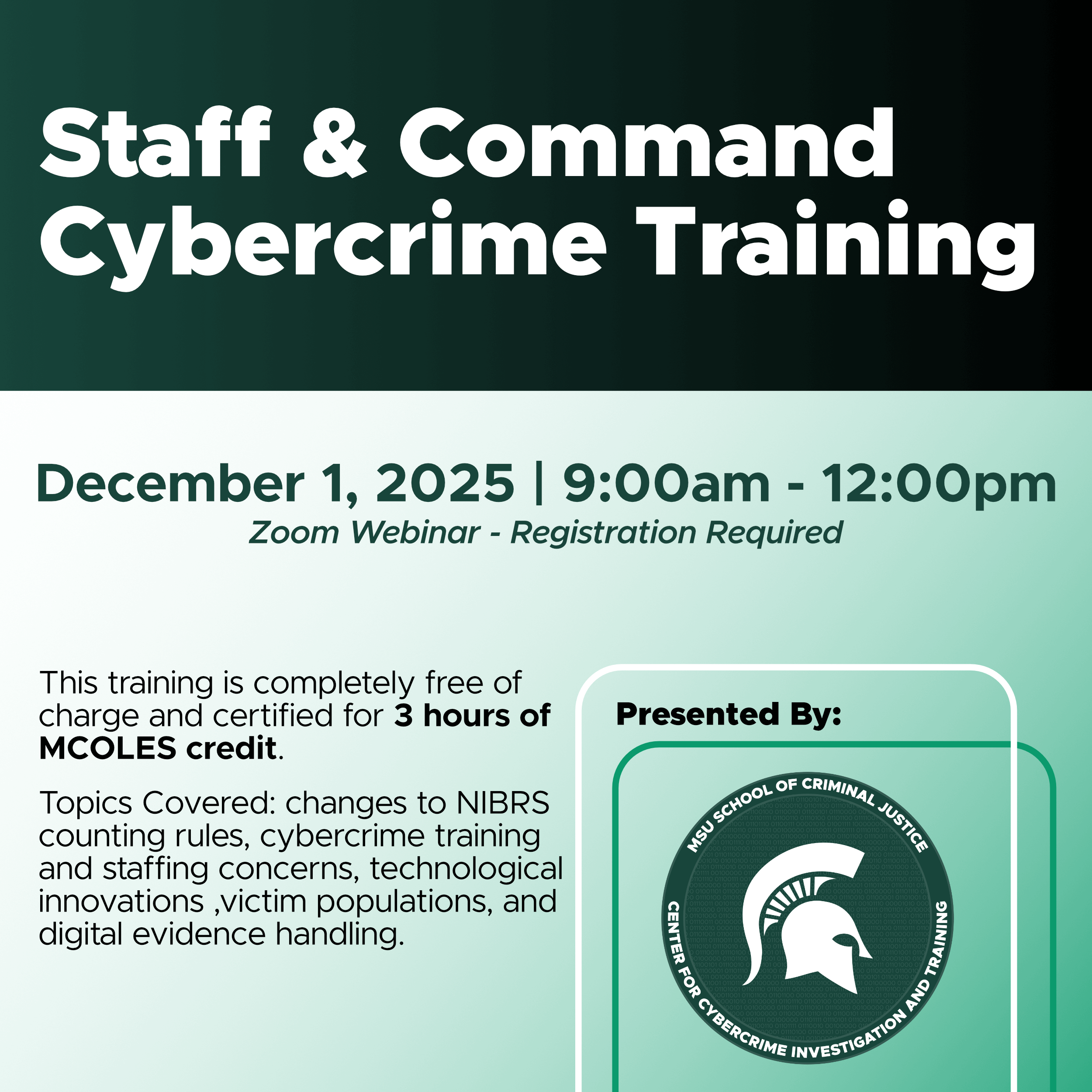 The training will cover topics critical to law enforcement combatting cybercrime, including changes to NIBRS counting rules, training and staffing concerns identified across the state, technological innovations that influence the practices of offenders and victim populations, and concerns related to digital evidence handling.